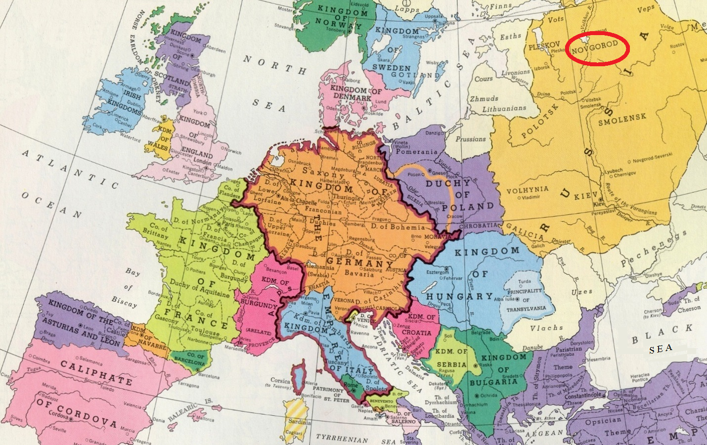 Novgorod is ringed on top-right