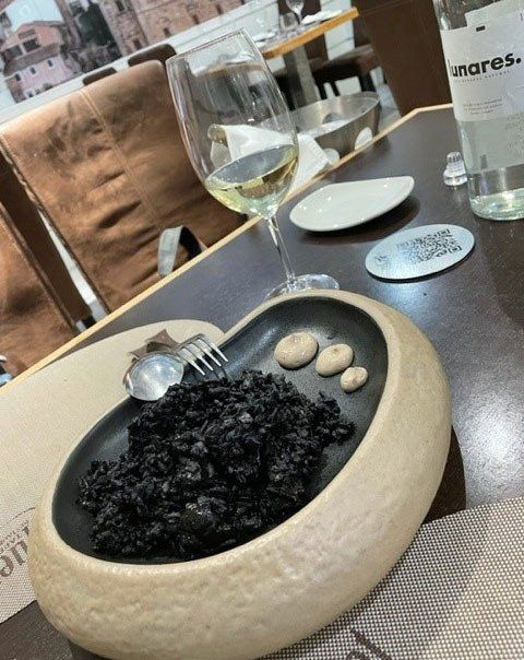 We stopped in the pretty town of Cáceres overnight, where we enjoyed some lovely fish and seafood dishes at Taperia Restaurant Bouquet, including tuna sushi, and some lovely black squid ink rice. We ordered raciones, a tapas which is large enough to share.