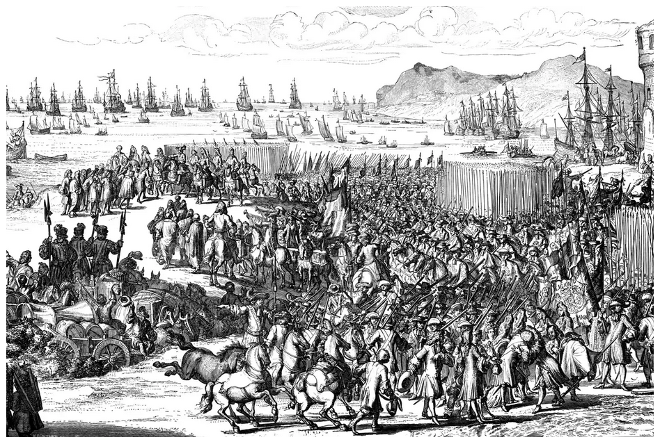 The Dutch forces of William of Orange at Torbay in Devon in November 1688