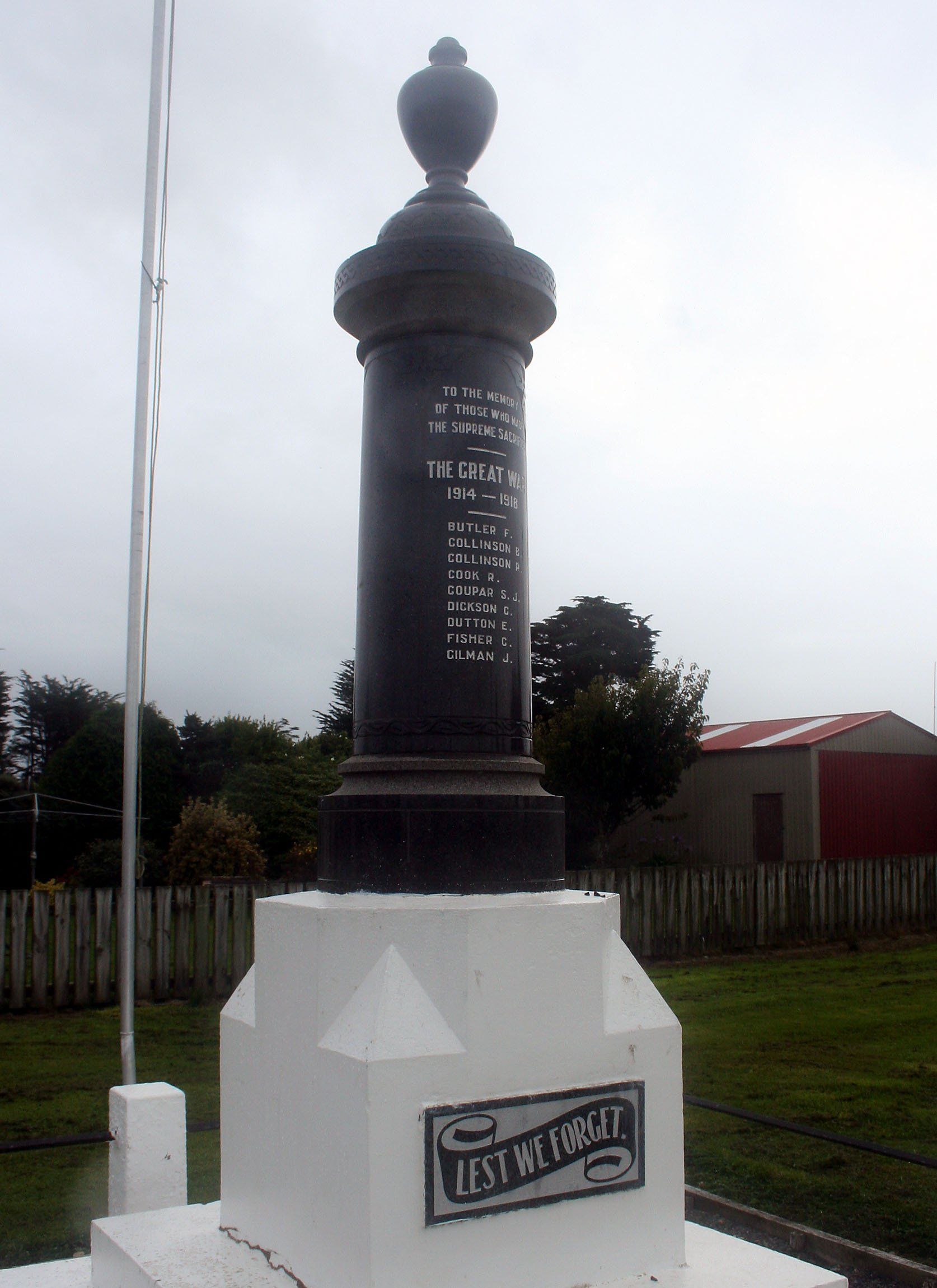 War Memorial in Colac Bay, New Zealand, Commemorating 15 Men from the Town who Died in the First World War