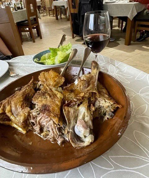 Our first stop in Segovia was one of the big discoveries of the trip. We knew that Segovia is famous for suckling pig (cochinillo). We tried it at a local tapas bar called Mesón de José Maria. The cochinillo